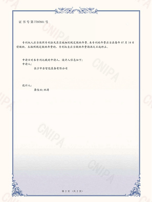 证书:2022304346593带方形内推头的打包机推头